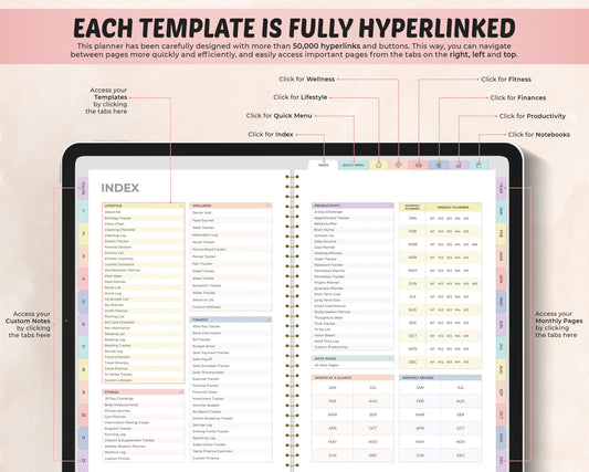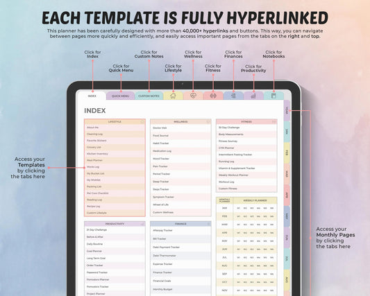 The 2026 All-in-One Digital Planner has been carefully designed to maximum productivity and help you achieve the goals you set. With a flexible and functional design that puts the user experience at the center, this planner is the ideal tool to help you find balance in your life.