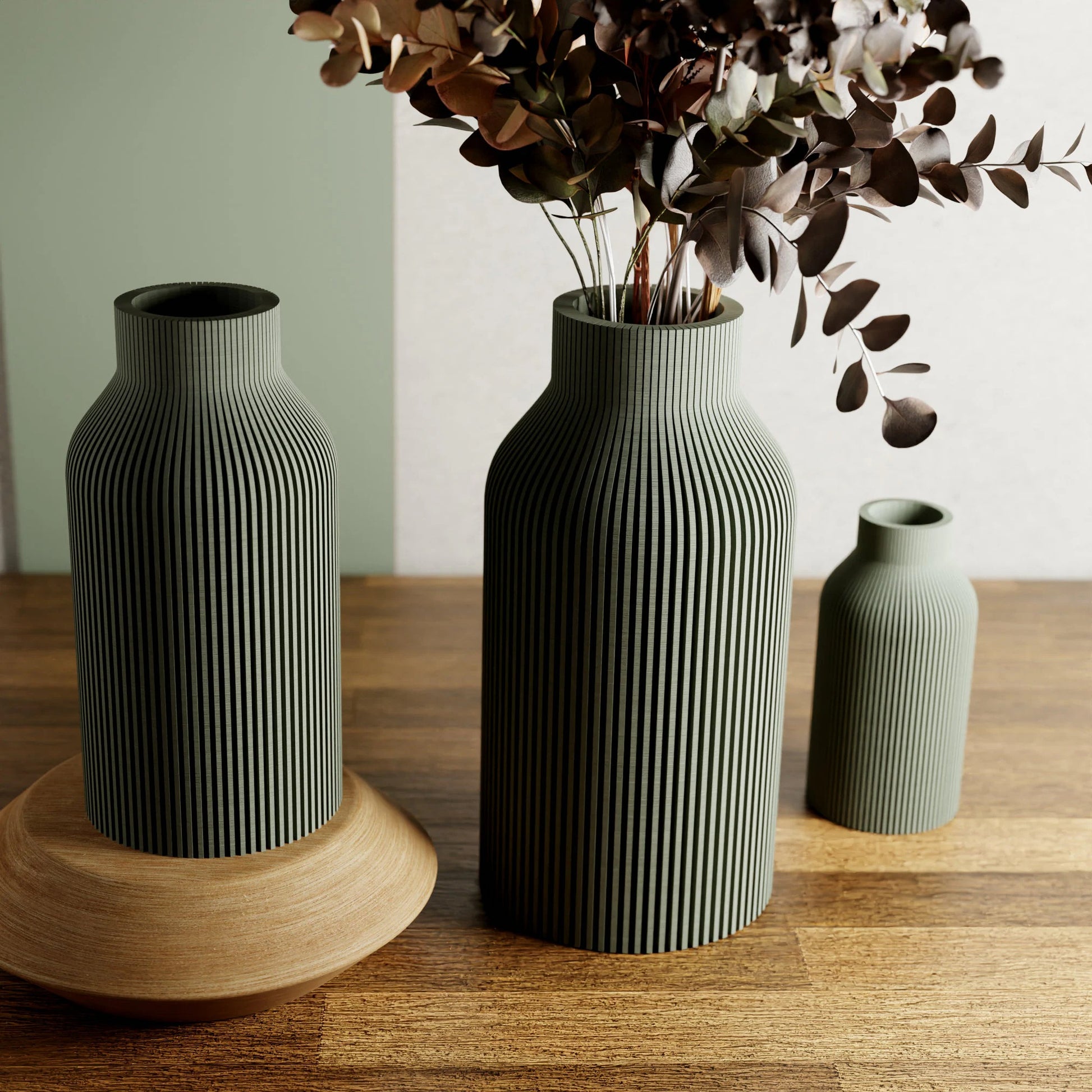 Introducing our sleek and contemporary Bottle Vase, a true embodiment of modern design. Crafted with meticulous attention to detail, this vase features perfect contoured vertical lines, mirroring the elegant silhouette of a classic bottle.